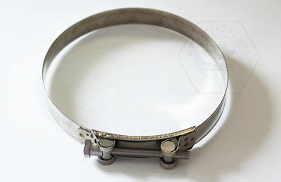 美式喉箍一般用于汽車、推土車、起重機和船舶等交通運輸工具上,美式喉箍最大特點是鋼帶螺紋有孔,在這些運輸工具中考慮在先的是摩擦力的問題。由于美式喉箍鋼帶的咬合槽是透孔式的,而螺絲的牙是嵌進去的,所以在鎖緊時更有力,咬合精確,但是由于鋼帶是己透孔,在拉力較強時鋼帶容易拉斷。故美式喉箍的抗拉性能,相比較而言不及德式喉箍。
