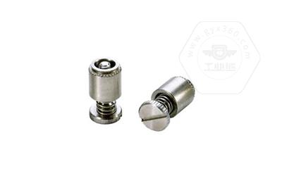 手緊螺釘?shù)膲恒T套具有壓花齒,壓裝于于機箱或薄鈑孔內(nèi)(注:薄板的鉆孔徑相對應彈簧螺釘?shù)膲糊X徑有一定要求的,形成一個外露的彈簧螺釘,用手擰另一端(即手擰端).因其里面固定有彈簧,螺釘相對于薄板的另一端來回進出。